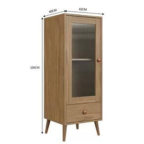 Sua estrutura é fabricada em MDP BP 15mm, posta e gaveta em MDP BP18, puxador em polímetro. O vidro que compõe a porta é canelado, sua gaveta possui corrediça telescópica e seus pés são em madeira natural, com sapata com feltro, evitando assim riscos no chão e uma maior durabilidade da peça.