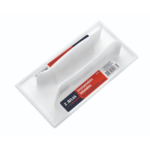 Desempenadeira plástica pequena para acabamento de texturas decorativas.