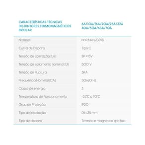 Proteja seus circuitos com os Mini Disjuntores Bipolares 50A Curva C Elgin. Eles são ideais para cargas indutivas, como ar-condicionado, micro-ondas e equipamentos que produzem picos de corrente na partida.Os disjuntores Elgin são construídos com qualidade máxima, seguindo rigorosas normas técnicas para instalações residenciais e comerciais de corrente alternada. Além disso, eles possuem um recurso inteligente de travamento da manopla, garantindo a proteção dos circuitos.Escolha a confiança da marca Elgin para obter a melhor combinação de qualidade, proteção e segurança elétrica. Invista em um ambiente seguro e eficiente com os Disjuntores Bipolares Elgin.