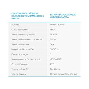 Proteja seus circuitos com os Mini Disjuntores Bipolares 50A Curva C Elgin. Eles são ideais para cargas indutivas, como ar-condicionado, micro-ondas e equipamentos que produzem picos de corrente na partida.
