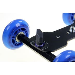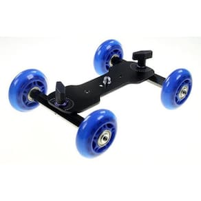 O Mini Dolly Skate para Câmeras e Filmadoras para até 8Kg, Cabeça de Tripé vendida separadamente permite que você efetue movimentos em linha reta ou curva. Ambos os eixos podem ser ajustados manualmente para que você tenha novos ângulos e mobilidade durante suas gravações ou fotografia. A rodas possuem revestimento em borracha, permitindo assim, um movimento suave e silencioso, utilizando-o mesmo em superfícies irregulares.Este Mini Dolly possui um sistema de orientação que, a partir das informações já contidas na orientação do dolly, você possa definir ângulos e eixos que o carrinho irá percorrer. O Dolly Skate possui encaixe para Cabeças Head com rosca padrão de 3/8 e 1/4, garantindo mais opções e descobertas com a sua Câmera DSLR. características: estilo Rodas Skate construção em alumínio rosca Central de 3/8 e 1/4 suporta Equipamentos de até 8kg Ideal para vistas panorâmicas de 360º rolamentos de de alta qualidade Adequado para Câmeras DSLR ou Filmadoras cabeça para Tripé não inclusa, vendida separadamente. Marca: Não Informado