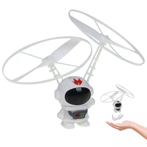 É um mini drone infantil em formato de Astronauta com controle de movimento por sensor infravermelho, basta colocar a mão por debaixo do drone e ele ficara suspenso no ar. A recarga é feita via USB e o cabo acompanha o produto. É muito interessante jogar.