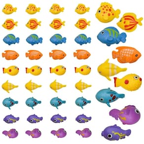 -?Pacote?Pacote de 50 peças de estatuetas de peixes em miniatura de estilos aleatórios. O número e a variedade são grandes o suficiente para encher seu pequeno aquário