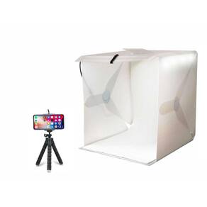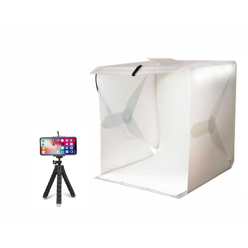 Mini Estúdio Fotográfico 36 Leds Com Tripé Para CelularCom o crescimento das vendas Online, as empresas de e-commerce precisam de fotos cada vez melhores.Com o Mini Estúdio Click você mesmo pode fotografar seus produtos com Facilidade e Qualidade.Não dizem que uma imagem vale mais que mil palavras Com fotos melhores você consegue atrair mais interesse e obviamente gerar mais vendas.DescriçãoMini Estúdio Click 36 leds inclui MINI TRIPE CELULARComponentes:Leds Branco Frio 6500 k assim você poderá fazer fotografias que não alteram a cor do produto.1 Fonte 12 V Bivolt automática1 Bolsa de transporte com botão de pressão.3 Fundos Infinitos em EVA - Branco, Preto e Verde Dimensões:Desmontado - 39 cm C x 36 cm L x 3 cm A vira uma linda pasta Montado - tamanho de 39 cm C x 36 cm L x 39 cm A mini estúdio super pratico Indicado para fotografar produtos de até 22 x 22x 25 cmPeso: 780 g Marca: Mini Estúdio Click