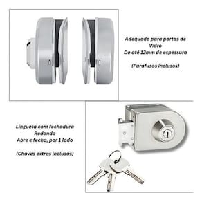 Sua solução chegou A fechadura para vidro porta de correr é a solução ideal para quem busca segurança e praticidade em ambientes com portas de vidro/ vidro. Fabricada em inox com acabamento cromado, oferece durabilidade e resistência, garantindo a proteção necessária para sua casa ou escritório. Com um design moderno e funcional, esta fechadura é compatível com portas de espessura entre 10 mm e 12 mm, facilitando a instalação em diversos tipos de portas. O modelo externo e interno possui um trinco inteiro e é acionado por chave, proporcionando maior segurança e controle de acesso. Ideal para janelas e portas de madeira, vidro, sociais, shoppings, negócios e etc... Esta fechadura é uma escolha versátil para quem valoriza a estética e a segurança em um só produto. Marca: Não Informado