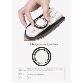 O mini ferro possui 3 temperaturas ajustáveis. Baixa (80ºC-120ºC), Média (140ºC-160ºC) e Alta (180ºC). Aquece rapidamente.