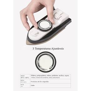 O mini ferro possui 3 temperaturas ajustáveis. Baixa (80ºC-120ºC), Média (140ºC-160ºC) e Alta (180ºC). Aquece rapidamente.