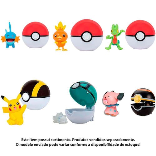 Mini Figura - Pokémon - Clip n Go - Sortido - Sunny: Tenha batalhas Pokémon onde quer que vá com o Pokémon clip n go! Adicione o Pokémon escolhido à sua equipe e viaje levando-o em sua Pokébola! Depois de conectar sua Pokébola a qualquer cinto ou cinto de Pokébola clip n go (vendido separadamente), você estará pronto para sua próxima aventura Pokémon incrível em casa ou em um torneio. Use sua imaginação, basta abrir a trava na parte de trás da Pokébola para revelar o Pokémon escolhido. Na Pokébola cabe qualquer figura Pokémon de até 5 cm (vendida separadamente). (Enviado de maneira sortida. Cada produto é vendido separadamente) • Da uma olhadinha nesses diferenciais: - Coloque a Pokébola em seu cinto e leve seu Pokémon para todo lugar - Colecione varias Pokébolas em um só cinto - Vasta variedade de Pokémons para pegar - Experimente inúmeras Pokébolas diferentes (vendidas separadamente) INFORMAÇÕES: • Produto: Mini Figura Clip n Go Sortido • Marca: Sunny • Coleção: Pokémon Clip n Go • Categoria: Bonecos e Figuras de Ação • Tipo: Mini Figura • Conteúdo: 01 Mini figura Pokémon sortido e 01 Pokébola sortida • Recomendação: para crianças a partir de 04 anos de idade ESPECIFICAÇÕES: • Referência: 2606 • Código de Barras: 7899573626068 • Embalagem (C x A x L): 14 x 20 x 07 cm • Embalagem (Peso): 0,090 kg • Material / Composição: Plástico • Registro: 000630/2021 • Certificado: Órgãos Autorizados - OCP´S (Organismos de Certificação de Produtos) BENEFÍCIOS DE BRINCAR: • Eleva a autoestima • Exercita a memória • Estimula o raciocínio • Exercita o imaginário • Desenvolve a criatividade • Desenvolve percepção visual • Desperta a atenção e curiosidade • Desenvolvimento neuropsicológico • Estimula habilidades motoras básicas • Incentiva a comunicação e linguagem • Desenvolve aspectos emocionais e afetivo • Estimula o reconhecimento de formas e cores • Curiosidade e descoberta AVISO: • As imagens são meramente ilustrativas • Os pesos, tamanhos e medidas são aproximados • As cores e estampas dos produtos podem ter variações • As informações são de responsabilidade do fabricante ou fornecedor