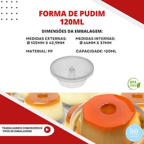 Ideal para preparar pudins e outras sobremesas, esta forma é a escolha confiável para confeitarias, padarias e serviços de entrega. Eleve suas criações culinárias a novos patamares de sabor e apresentação com a nossa forma de pudim de plástico 120ml.