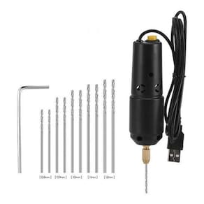 Mini Furadeira Usb Portátil Artesanato Resina Madeira Jóias Características: Função: Projetado para joias de resina, fazendo o torno de pino irá ajudá-lo a perfurar pequenos orifícios em resina facilmente, o que pode trazer muita conveniência para fazer colar, pulseira, pingente, brinco, chaveiro e assim por diante. Insira a broca que você precisa, em seguida, aperte a cabeça firmemente para terminar a instalação. Cabo USB Especificações Material: ABS Cor: Preto Tamanho do pacote: 17,5x8 x4cm Peso do pacote: 130g Pacote inclui: 01 - Mini broca elétrica USB 10 - Brocas de 0.8mm até 1.2mm Marca: S.G Style