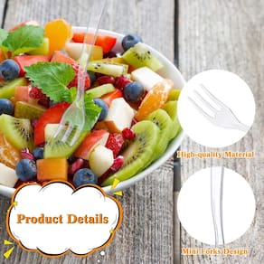 - Mini garfos para aperitivos: esses mini garfos transparentes têm aproximadamente 3,7 x 0,6 polegadas/9,5 x 1,5 cm, ideais para hóspedes ou clientes saborearem pequenas sobremesas ou porções pequenas