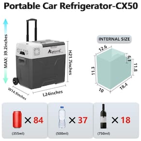 Key Features of Alpicool CX30 Suitable for Car and home using work on 12, 24V DC. Run great with your solar system. Can freeze down to 4F 20C for true car refrigeration. 3 stage car battery protection system to prevent the car battery run down. With trolley and wheels, easy for moving. Vibration resistant design to protect the device safety while driving on road. Safe to run on angles up to 45from horizontalgreat for 4WDing Digital control panel with electronic temperature control. High efficiency compressor with adjustable ECO and HH modes. Product Details Dimensions23.1 x 14.9 x 15.4 inches Capacity32 Quar0 Liter Package 1 X Alpicool CX30 fridge freezer 1 X DC power cord12, 24V 1 X Instruction book Wanting to keep the beer cool on a trip to the outdoors Going away for a while and theres food that needs to be kept in a freezer The Alpicool CX30 Portable Fridge is a great choice of kit for whose looking for a fridge, freezer portable appliance Whether youre off to the park for a picnic, or on the road camping for months, the New Alpicool CX30 Portable Fridges are invaluable for keeping your food fresh and your drinks cold Its capable of being powered from 12V and 24V car battery.Whats more, We have 3 level car battery protect system that your vehicles batteries can stay charged without run down. Ready for hitting the high way and have a wonderful time on your adventure Lets go with the Alpicool CX30 Product Model Alpicool C15 Capacity 15 Liter Size 22.4x12.6x10.2 Item weight 21.2 pounds Freeze down 20C 4F Alpicool C20 20 Liter 22.4x12.6x12.6 22.1 pounds Alpicool CX40 40 Liter 23.1x14.9x18.7 Trolley design 30 Liter Size 23.1x14.9x14.4 25.6 pounds Alpicool CX50 50 Liter 23.1x14.9x21.5 30.9 pounds Alpicool C22 NEW 22 Liter 22.4x12.6x13.2 26.5 pounds 20C 4F Ice cube tray and built in LED light Multi Application