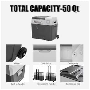 STORAGE SPACE32 Quar0 Liter capacity ,fits 33 cans of Cola. FREEZES WITHOUT ICE 4F 20C deep chilling down performance ,no need ice ever. Run great with your small solar system as well. TROLLY DESIGNIndividual trolley design with heavy duty handles and wheels that make it easy transport and carry to anywhere. CAR BATTERY PROTECTIONWith temperature memory function and 3 different levels for battery protection Low, Med and High to protect your vehicle battery without run down. KEEP COOLING AND FRESHReliable sealing property construction,thick and high Density Foam Insulation.Continues keep cooling performance during your journey.Fresh all way and super energy saving