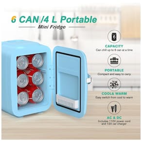 Compacto e Portátil: Com uma capacidade de 4 litros, este refrigerador pode armazenar até seis latas de refrigerante de 355 ml. Suas dimensões internas são 13,5 cm de profundidade x 14,3 cm de largura x 20,5 cm de altura. Equipado com uma alça de transporte conveniente e uma prateleira removível, este mini frigorífico é fácil de levar, tornando-o perfeito para uso em quartos, escritórios, dormitórios, viagens rodoviárias, passeios de barco, acampamentos e muito mais.