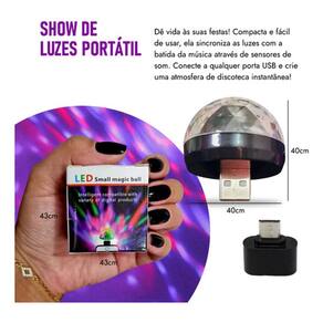 Luz Festa USB Mini Bola Discoteca para Carro e Celular