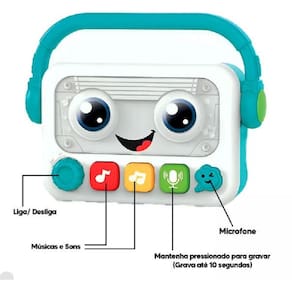 Conheça Bebê Musical Gravador da Braskit. Brinque gravando sua voz. Este brinquedo estimula a habilidades diversas, por exemplo atividades manuais, atividades visuais, estimula a coordenação motora e ensina a criança sobre músicas diversas e uma variedade enorme de sons. Grave sua voz e mostre para seus amigos e família e divirta-se.CARACTERÍSTICAS TÉCNICAS:Conteúdo da Embalagem: 01 Gravador Musical.Dimensões Aproximadas do Produto: 13cm x 12cm (Altura x Largura)Dimensões Aproximadas da Embalagem: 24cm x 20cm x 09cm (Altura x Largura x Comprimento/Profundidade)Material/Composição: Plástico / Componentes Eletrônicos.Idade Mínima Recomendada: A partir de 18 meses.Participantes: A partir de 1 pessoaAlimentação: 02 Pilhas AA (Não inclusas).Marca: Braskit.Referência: 6009