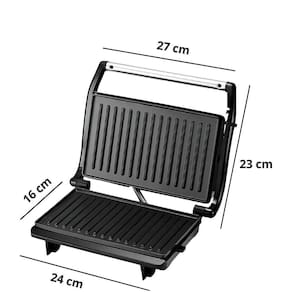 Função 2 em 1: sanduíches e grelhados, Superfície antiaderente, Alça fria, Luz indicadora, Design compacto.Termostato regulável
