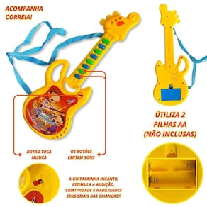 Funções: toca som. A guitarrinha infantil estimula a audição, criatividade e habilidades sensoriais das crianças O que você vai receber em sua casa conteúdo da embalagem