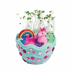 Crie seu próprio jardim de unicórnios! Experimente a maravilha da natureza o ano todo, enquanto você se diverte com jardinagem em ambientes fechados com os kits de terrário Mini Garden. Artesanato de jardim interno para crianças inclui componentes não tóxicos e testados em segurança, fornecendo tudo o que as crianças precisam para cultivar um mini jardim de plantas de chia. Basta adicionar água!
