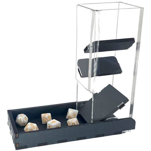 Nossa torre de dados curta de 7" é uma interpretação moderna com frente e laterais em acrílico transparente. Veja seus dados caírem pela torre!