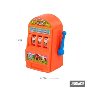 Mini Jogo Infantil Caça Níquel Plástico Co O Mini Jogo Infantil Caça-Níquel é uma divertida simulação de máquina de cassino para crianças. Basta girar a alavanca e torcer para formar combinações.\nFeito em plástico colorido, é leve, resistente e fácil de brincar. Estimula a coordenação e o raciocínio de forma lúdica e segura.\nDisponível em cores diversas.\nEspecificações:\nMarca : ARK BRASIL\nTipo de material : Plástico\nCores ou Estampa : Color\nDimensões do Produto : 8 X 6 X 3,5 CM\nDimensões da Embalagem : 8 X 6 X 3,5 CM\nPeso Bruto (Gramas) : 0.022