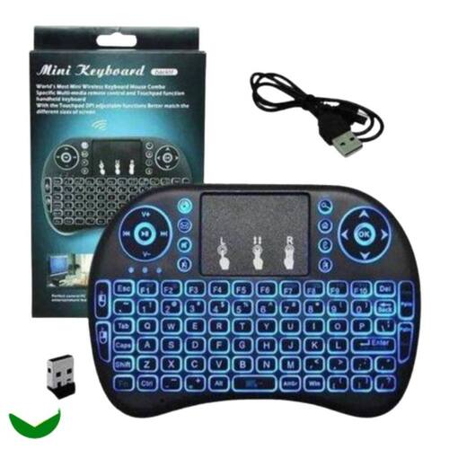 Mini Teclado Retro Iluminado Led Mouse Sem Fio RecarregavelMini Teclado Retro Iluminado RGBCom design compacto e ergonômico, este Mini Teclado RGB é perfeito para utilizar sem cansar as mãos, além da praticidade de levá-lo para qualquer lugar.A fonte de energia do teclado é através de bateria de lítio recarregável e acompanha cabo USB para alimentação.O Mini Teclado RGB possui 92 teclas, incluindo comandos multimídia e teclas de controle para jogos de computador. É possível realizar comandos multimídia, bem como de teclado e mouse. O Mini Teclado RGB é equipado com touchpad altamente sensível para melhorar a precisão do ponteiro ao utilizar.A iluminação do teclado é feita através de LEDs atrás dos botões. Você pode escolher a cor da iluminação do teclado entre vermelho, verde e azul RGB .Ideal para vídeo games, tablets, notebook, computador, media player, televisores smart, etc. Para uso no PC o Mini Teclado RGB é compatível com sistema operacional Windows e Linux Homologação Anatel: 060792000160