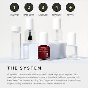 Quatro passos para manicure impecável O mini kit Dazzle Dry é a maneira perfeita de experimentar nosso sistema de unhas naturais de 4 etapas. Adequado para iniciantes e especialistas, nosso sistema de secagem rápida e à prova de falhas lhe dará resultados profissionais em casa. O mini kit de sistema de unhas inclui nossos produtos emblemáticos de cuidados com as unhas: Prep, Base Coat, Lacquer e Top Coat, juntamente com um complemento bônus, Revive, que é nosso diluente especial para esmaltes. Nosso premiado sistema de cuidados com as unhas em quatro etapas oferece resultados mais duradouros sem descascar, lascar e desbotar por mais de 7 dias. Escolha entre vários acabamentos, incluindo creme, metálico e brilhante, juntamente com sua opacidade preferida. Com o sistema de unhas Dazzle Dry você pode criar visuais infinitos e desfrutar de manicure com qualidade de salão que secam em 5 minutos. Fórmula não tóxica Este é o modelo para melhores unhas. Dazzle Dry é o único sistema desse tipo que oferece o alto desempenho de um esmalte de gel sem o uso de produtos químicos agressivos, luz UV ou danos à unha natural; tudo isso enquanto protege e fortalece a unha ao longo do tempo. Todos os produtos no sistema de unhas Dazzle Dry são feitos sem ingredientes prejudiciais que são comumente encontrados em produtos para unhas como formaldeído, cânfora, ácido sulfúrico, parabenos e SLS. Sistema inovador de 4 etapas da Dazzle Dry Projetado como um sistema, formulado para resultados. O premiado sistema de unhas de quatro etapas da Dazzle Dry seca ao ar livre em 5 minutos e dura mais de 7 dias sem lascas! Os produtos Dazzle Dry não são tóxicos, veganos e livres de crueldade. Experimente hoje e desfrute de manicures e pedicures de qualidade de salão que duram mais e não danificam suas unhas. Como usar: 1. Esfregue cada unha completamente com a preparação de unhas 2. Aplique 2 camadas de camada de base 3. Aplique 2 camadas de laca 4. Aplique 1 camada de Top Coat - DAZZLE DRY Sistema de unhas em 4 etapas: experimente o premiado sistema de unhas da Dazzle Dry pela metade do preço com este mini kit exclusivo de 5 peças. O mini kit de sistema de unhas da Dazzle Dry inclui Nail Prep (7,4 ml), base coat (5 ml), laca (5 ml) e Top Coat (5 ml). O sistema de unhas de quatro etapas da Dazzle Dry seca ao ar livre em 5 minutos e dura mais de 7 dias sem lascas! Nossos produtos são hipoalergênicos, livres de ingredientes reativos, subprodutos animais e testes em animais. - Secar em 5 minutos: o inovador sistema de unhas natural da Dazzle Dry é simples e rápido. Em apenas 4 etapas, você pode ter unhas de qualidade de salão em casa usando suas unhas naturais. Desfrute de manicures impecáveis que duram mais de 7 dias sem lascar ou descascar. Depois que o Dazzle Dry Top Coat for aplicado, espere cinco minutos — sua manicure está pronta! - MANICURES NÃO TÓXICOS: Dazzle Dry é o único sistema natural de cuidados com as unhas que oferece unhas rígidas em apenas cinco minutos sem exposição a lâmpadas UV que emitem raios UV cancerígenos. O sistema Dazzle Dry proporciona o alto desempenho de um esmalte de gel sem o uso de produtos químicos agressivos ou danos à unha natural; tudo isso enquanto protege e fortalece a unha ao longo do tempo. Livre de formaldeído, cânfora, ácido sulfúrico, parabenos e SLS. - Bônus de presente: O conjunto de mini kit de unhas Dazzle Dry também vem com o diluente de esmalte Revive (5 ml) que apresenta nossa fórmula exclusiva para restaurar Dazzle Dry consistência de uma camada superior e vernizes de unha. - VERDADE: Um rosa sal do Himalaia pálido. Creme semicorte. As cores e a aparência da laca online podem variar ligeiramente do produto real devido à iluminação fotográfica, configurações e diferenças na forma como os dispositivos/telas individuais exibem a cor.