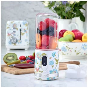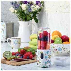 O Mini Liquidificador Portátil Laura Ashley Elveden White entrega praticidade, desempenho e design refinado para preparar smoothies, shakes e bebidas pós-treino. Equipado com garrafa de 450ml com tampa rosqueada, acabamento branco com estampa floral Elveden aplicada manualmente, motor eficiente de 100W e seis lâminas em inox, atinge até 25.000 rpm para triturar gelo e ingredientes fibrosos de forma rápida.