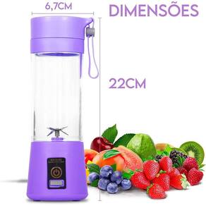 Mini Liquidificador Portátil Recarregável 6 Lâminas Roxo Você mistura e bebe na mesma garrafa, o presente ideal para amigos e para você mesmo. Por ser portátil e com design revolucionário permite ser levado para academia, viagens e até mesmo ao escritório. Cor: RoxoCapacidade: 380 mlMotor : DC3.6VRotação do motor: 2200 rpm Desde Já Agradecemos a Todos Os Nossos Clientes Pela Confiança e Preferencia Depositada em Nossa Equipe.Muito importante para nossa Equipe a sua Qualificação, assim que o Produto chegar.Contamos com Uma Equipe Eficiente e Qualificada Para melhor atende-lo e tirar todas as Dúvidas.Helê store.Corrente de trabalho: 10 -12A Estilo da bateria: 3,7 VCapacidade da bateria: 2000mAHCarregamento via USB do computador ou carregador de celularTempo de carregamento: Cerca de 3 horasÚnico tempo de trabalho: 90 sProteção Ocioso: Desligue em 5sDimensões : 23,5 x 8 cm Altura e DiâmetroCores Sujeitas à disponibilidade em estoqueMaterial do Copo: AcrílicoCover: PPCopa de corpo: PCPorta-copos e conectores: ABSAnel de Vedação: Silicone