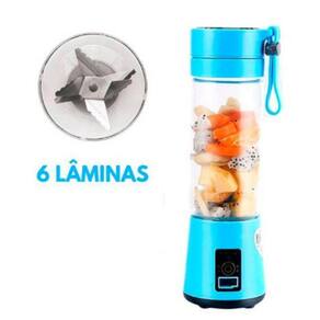 Mini Liquidificador Portátil Shake Recarregável USB Mini Liquidificador Portátil 6 lâminas Shake Take Juice Cup Recarregável USB Características: - Portátil, com bateria recarregável com autonomia para 10 misturas.- Tem sistema de proteção que não liga sem o copo transparente.- Conta com alça de silicone para melhor transportá-lo.- Você mistura e bebe na mesma garrafa. Instruções de uso: - Corte as frutas em pedaços pequenos e coloque na garrafa, cerca de 60% do copo após adição do líquido, de modo que o volume total represente cerca de 80% do copo.- Agite o produto para um melhor funcionamento, e pressione o interruptor, para iniciar o motor, em seguida delicadamente agitar o produto.- Como ligar: pressione o botão on/off duas vezes consecutivas click, click Especificações: - Carregamento via USB do computador ou carregador de celular.- Capacidade: 380ml.- Motor: DC 3.7v.- Rotação do motor: 22.000rpm.- Carga completa: 4 horas.- Durante o carregamento: 15.000rpm.- Corrente de trabalho: 10-12A.- Dimensões: 23,5 x 8cm.- Peso: 465g. Itens inclusos: - 1x Liquidificador.- 1x Cabo USB.- 1x Manual.