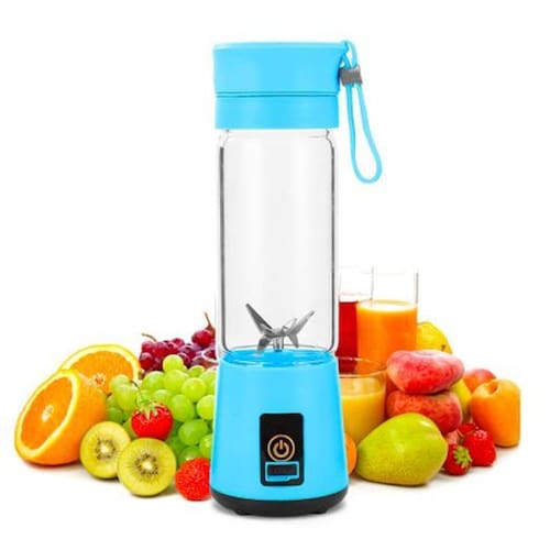 com ele você pode preparar facilmente sucos, vitaminas, shakes e muito mais. Basta cortar os ingredientes, colocar um pouco de água ou leite e pronto, nosso liquidificador portátil te entrega uma bebida extremamente saborosa em segundos pronta para beber. Com bateria recarregável que possui autonomia para até 10 misturas. Tem sistema de proteção que não liga sem que o copo esteja encaixado na base. Além disso possui 6 lâminas que garantem mais potência para misturar basicamente qualquer tipo de fruta que precisar. Também conta com alça de silicone para melhor transportá-lo, seja no trabalho, academia ou faculdade, você terá sempre como preparar bebidas a qualquer momento. Instrução de uso: lave as frutas, corte em pedaços pequenos coloque na garrafa, cerca de 60% do copo após adição do liquido, de modo que o volume total representante cerca de 80% do copo. Não é para ser utilizado com congelados
