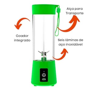 Esse liquidificador é verdadeiramente portátil e conveniente, pois permite que você misture e beba na mesma garrafa, eliminando a necessidade de usar vários recipientes. Além disso, ele possui um motor de alta potência, lâmina de aço inoxidável e alça para transporte, garantindo um produto de qualidade, seguro e limpo.