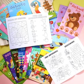 - Diversão e jogo: estes pequenos livros de atividades podem exercitar o pensamento, leitura, contagem, criatividade, prática e cultivar a conscientização da capacidade intelectual. Os livros de atividades ajudam as crianças a desenvolver habilidades essenciais, incluindo força das mãos e aprendizagem de diferentes elementos