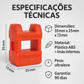 Mini magnetizador desmagnetizador para chaves e pontas bit dremax cor vermelha Chega de parafusos caindo, chaves escorregando ou ferramentas sem precisão. Este pequeno acessório é a solução rápida, prática e inteligente para magnetizar ou desmagnetizar suas chaves de fenda, phillips, ponteiras e bits com um simples movimento. Ideal para uso em oficinas, eletrônica, manutenção residencial ou hobby. Por que usar o magnetizador da dremax - magnetize ou desmagnetize em segundos - sem eletricidade, sem mistério - evita perda de parafusos e peças pequenas - design compacto, leve e ultra resistente - serve em qualquer chave de fenda ou ponteira padrão - ferramenta 2 em 1 - uma face magnetiza, a outra desmagnetiza - feito com placas magnéticas revestidas em plástico durável - compatível com chaves de precisão e bits intercambiáveis Como usar: - para magnetizar: passe a ponta da chave pela área marcada com magnetize positivo . - para desmagnetizar: use a área oposta, marcada com demagnetize negativo . - pronto sua ferramenta está pronta para uso. Especificações técnicas: - marca: dremax - referência: mdcf2 - dimensões: 35 x 25 x 13 mm - material: plástico abs com núcleo magnético - função: magnetizar e desmagnetizar chaves e ponteiras 1. Serve em qualquer tipo de chave Sim é compatível com chaves de fenda, phillips, bits e ponteiras padrão. Inclusive modelos de precisão. 2. O efeito é permanente A magnetização pode durar dias ou semanas, dependendo do uso. Você pode repetir o processo sempre que quiser. 3. Ele estraga a ferramenta Não. O produto não agride o metal nem danifica as ferramentas. 4. Pode ser em eletrônicos Sim, mas cuidado: evite magnetizar ferramentas que serão usadas em placas sensíveis para não afetar componentes eletrônicos. 5. Ele é forte o suficiente para segurar parafusos grandes É ideal para parafusos pequenos a médios. Para parafusos muito grandes, o efeito é limitado. Marca: Não Informado