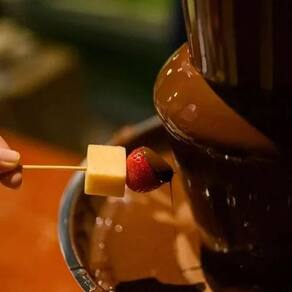 Mini Máquina Chocolate Cascata Fondue Panela Elétrica 60w Voltagem: 110v Mini máquina de fondue cascata de chocolate Contém corpo compacto e é muito fácil de usar, basta ligar na tomada, em uma entrada de dois pinos. Agora é colocar o chocolate já derretido em sua base e ligar o motor. O chocolate é impulsionado através da torre, gerando um formato de cascata.