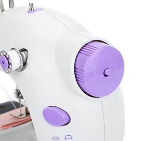 Mini máquina costura portátil. Esta mini máquina de costura é ótima para trabalhos simples do dia-a dia, como costurar uma barra de calça, mangas de camisas, almofadas, panos de prato e muito mais. Ela é prática e eficiente, tornado suas tarefas muito mais fáceis. Possui sistema de iluminação, que auxilia em ambientes com pouca luz. Uma ótima opção de presente