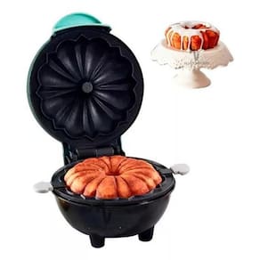 Mini máquina de fazer bolos bundt, compacta, com aquecimento rápido, luz indicadora de pronto, pés antiderrapantes e superfície antiaderente.Chapa antiaderente