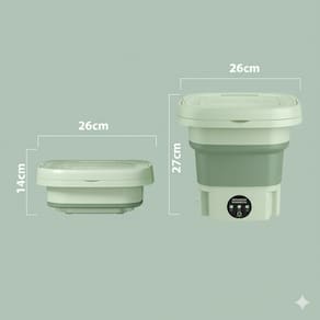 Mini Máquina De Lavar Roupas Dobrável Portátil 6,5 Litros Verde Cansado de roupas sujas acumulando em viagens ou em espaços pequenos? Apresentamos a Mini Máquina de Lavar Roupas Portátil Dobrável 6,5L, a solução perfeita para quem busca praticidade e eficiência na hora de lavar roupa!