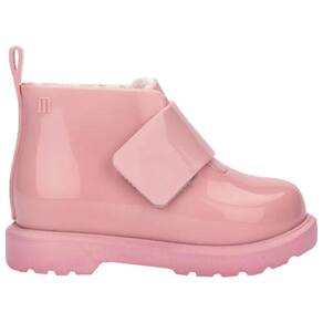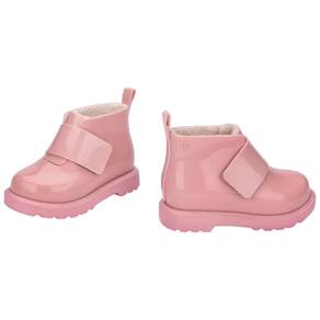 A Mini Melissa Chelsea Boot Baby, com acabamento vulcanizado e fechamento por fita duplamente aderente. Medida do cano de 7,5 cm e circunferência de 24 cm. Salto de 2,5 cm. Palmilha em PU, sola em EVA e interior em pelo garantem conforto e flexibilidade. Melflex é 100% reciclável