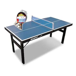 MINI MESA DE PING PONG Júnior MDP 12mm 1003 KLOPF + Kit 2 Raquetes e 3 Bolinhas - 5055 MINI MESA DE PING PONG Júnior MDP 12mm 1003 KLOPF – Tampo em MDP de 12 mm, com ótimo acabamento em primer azul com linhas demarcatórias brancas; – Pés em madeira maciça dobráveis; – Ideal para crianças e pequenos espaços; – Acompanha suporte e rede; – Medidas da Mesa: C x L x A – ( 1,5 x 0,8 x 0,76 ) m KIT Ping Pong 5055 - 02 Raquetes com os lados revestidos em borracha lisa; - 03 Bolas brancas;