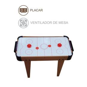 Conteúdo da Embalagem: - 1 Mesa de Air Hockey - 2 Rebatedores - 2 discos - 1 Ventilador da mesa - funciona com 3 pilhas AA não inclusas