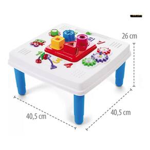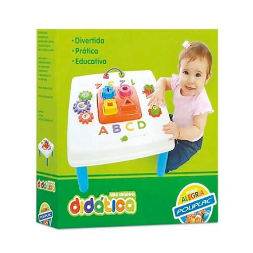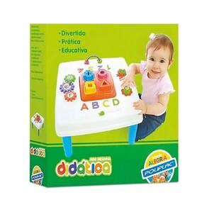 Informações do Produto: A mini mesinha didática de atividades junta diversão e desenvolvimento de habilidades. Consiste em uma mesa desmontável e de fácil transporte com um tampão repleto de objetos com diferentes formatos, cores e que ajudam no desenvolvimento da concentração, coordenação motora, raciocínio lógico, tato e visão.