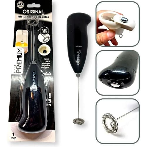 Mini Misturador De Bebidas Drink Mini Mixer Pilha Inox Basta adicionar o líquido que deseja misturar na caneca ou copo, apertar o botão na alça do misturador e pronto, o líquido será misturado de maneira rápida e eficiente. Prático e extremamente durável, o misturador funciona com duas pilhas AA não inclusas , que podem ser encontradas na grande maioria de mercados ou lojas de eletro-ferragens. O mecanismo que permite que o líquido seja misturado é suficientemente forte para que, inclusive, se forme um pequeno redemoinho enquanto o líquido é misturado no interior do recipiente. Marca: Desert Ecom