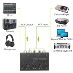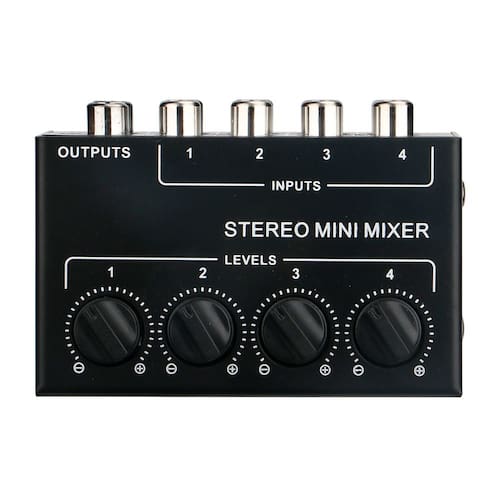 Material: metal Cor: preto Tamanho da embalagem: 14,5 x 14 x 10 cm Peso da embalagem: 0,32 kg Lista de embalagem: 1 x misturador• Este mini mixer estéreo de 4 canais permite conectar várias fontes de áudio, como instrumentos, laptops, CD players ou dispositivos de mídia, e combiná-las em uma saída estéreo limpa para gravação ou reprodução. • Cada canal tem seu próprio botão de nível independente, permitindo equilibrar volumes com precisão e criar uma mixagem suave sem interferência de sinal ou reprodução. equipamento profissional complicado. • Projetado como um misturador passivo, não requer fonte de alimentação, o que o torna simples, confiável e fácil de integrar em configurações compactas de estúdio, espaços de gravação domésticos ou pequenos ambientes ao vivo. • O gabinete de metal durável e os conectores RCA fornecem conexões estáveis e longa vida útil, ajudando a proteger o circuito interno do desgaste diário durante o transporte ou uso frequente. • Com um corpo compacto e leve, este mini mixer estéreo é fácil de transportar e armazenar, tornando-o ideal para músicos, podcasters, criadores de conteúdo e qualquer pessoa que precise de mixagem rápida e portátil controle. Palavras-chave genéricas(=250):Mini mixer estéreo de 4 canais mixer de áudio passivo hub rca compacto estojo de metal portátil mixer de instrumentos de gravação doméstica estúdio de podcast computador leitor de CD dispositivo de áudio