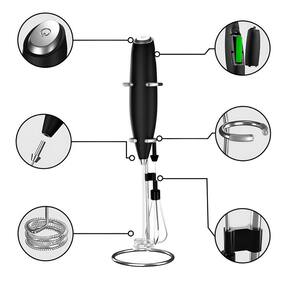 Mini mixer portátil com 3 níveis de velocidade ajustáveis, design leve e elegante. Inclui suporte para organização e duas pontas intercambiáveis (fouet e mola) para diferentes tipos de preparo. Opera com 2 pilhas AA (não inclusas).Acompanha copo