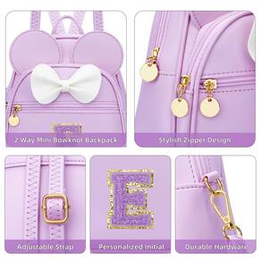 Mini mochila KKXIU Girls Initial Bowknot de couro sintético roxa
