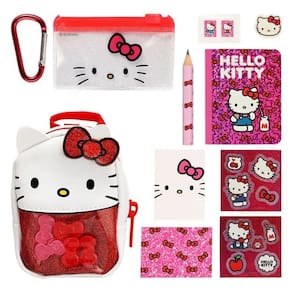 Feitas com materiais de alta qualidade, cada mochila contém 6 encantadoras surpresas de papelaria da Sanrio, como estojos de lápis, canetas, réguas, cadernos, cartões postais e adesivos.