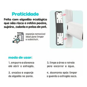 Além disso, o Mini Mop possui uma esponja seca, que é perfeita para a limpeza de diferentes superfícies. Com ela, você poderá remover a sujeira de forma eficaz, deixando tudo limpo e brilhante. E para garantir a durabilidade do produto, é importante seguir alguns cuidados, como não esfregar uma superfície com a esponja seca, evitar deixar cair no chão e evitar ao máximo o contato com produtos químicos.