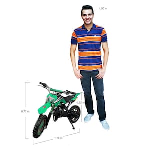 A Mini Moto Cross BZ Arena 49cc com motor 2-tempos e com pneu maior é uma réplica inspirada nas motos de trilha, cobiçadas pelos amantes de velocidade. Ideal para iniciar nas competições off-road, possui motor movido a gasolina com óleo 2tempos que devem ser utilizados em conjunto, permitindo grande potência em comparação aos concorrentes.
