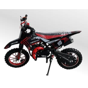 A Mini Moto Cross BZ Monster 49cc com motor 2-tempos, escapamento duplo e com pneu maior é uma réplica inspirada nas motos de trilha, cobiçadas pelos amantes de velocidade. Ideal para iniciar nas competições off-road, possui motor movido a gasolina com óleo 2tempos que devem ser utilizados em conjunto, permitindo grande potência em comparação aos concorrentes. Conta com carenagem especial produzida em material extremamente resistente, suportando pequenos impactos, colisões e quedas. Assento e guidão em posição que garante maior conforto. Novo sistema eficiente de freio a disco, mais macio e preciso! Agora com pneu maior com medida externa de 15’, com suspensão dianteira upside down (suspensão invertida). A Mini Moto Cross BZ Arena 49cc é uma ótima atividade ao ar livre, além de estimular a coordenação motora e o desenvolvimento de seus filhos. A Barzi Motors tem disponível nas cores: Azul, ou Vermelha. Fácil de ser transportada devido às dimensões reduzidas. Atenção: - Utilize sempre equipamentos de segurança como capacete e calça comprida. - Não force a partida. Medidas aproximadas (CxLxA): 125 x 55 x 80 cm Altura do assento: 60 cm Altura do pedal ao assento: 35 cm Altura do guidão: 80 cm Capacidade: 45 kg Motor: 2 tempos (gasolina comum com óleo 2-tempos para motocicleta) Alimentação: Carburador Sistema de partida: corda reforçada Acelerador: punho Escapamento: duplo Transmissão: corrente Freios dianteiro e traseiro: Disco Passageiros: 1 (sob risco de quebra permanente) Capacidade de subida ou inclinação: 10° - proibido subida íngreme para não forçar embreagem Pneu: com câmara aro 10 (2.50-10) aro externo 15 Velocidade máxima: 50 km/h Pode ser adaptada com rodinhas de bicicleta (não acompanha). Observe as dimensões e especificações (partida a corda) antes da compra. Garantia legal de 90 dias para defeito de fabricação. Qualquer deve ser comunicada assim do recebimento e antes do uso do produto. Todas as informações divulgadas são de responsabilidade do fabricante/fornecedor. Imagens meramente ilustrativas. Não nos responsabilizamos pela montagem/instalação dos produtos.
